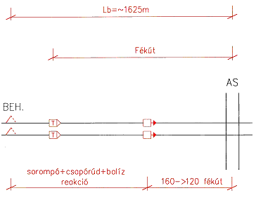 Ezen értékek figyelembevételével a behatási pont távolsága közel 3000m (2978m)-re adódik a sorompót fedező jelzőtől. Ha megnézzük az ábrát, a probléma azonnal szembetűnik, nevezetesen az, hogy az útátjáró és a fedező jelzője közötti távolság változó.