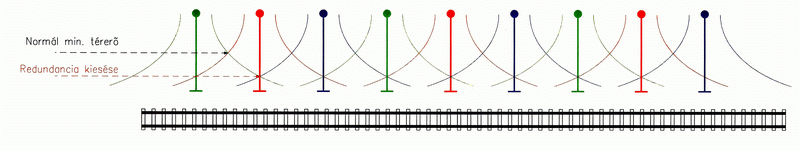 Második esetben az antennakörzetek számát térben eltolva kétszerezik meg. Az antennakörzeteket olyan sűrűn telepítik egymáshoz, hogy egy bázisállomás kiesése csak térerő csökkenést eredményez, de a teljes lefedettség megmarad.