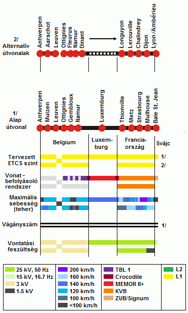 Az "A" korridor főbb paraméterei