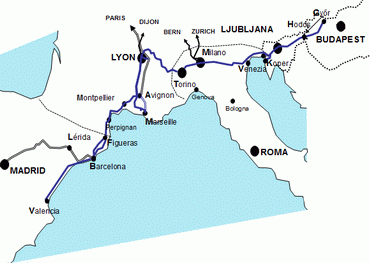 Velence - Trieszt/Koper - Ljubljana - Maribor - Budapest - Uzhhorod - Lviv - Kiev.