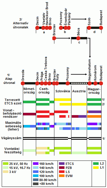 Az "E" korridor főbb paraméterei