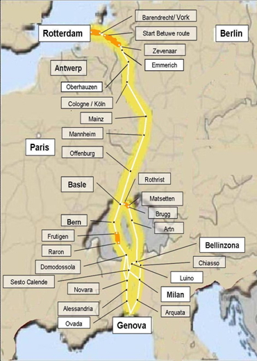 A korridor a Hollandia északi részén elterülő rotterdami óriáskikötőt hivatott összekötni az olaszországi Genovában található kereskedelmileg ugyancsak fontos kikötővel. Mindezen túl a folyosó sűrűn lakott részeket köt össze mind a négy országban, és áthalad Európa legnagyobb ipari gócpontján is. Jóllehet éles verseny áll fent mind a párhuzamos hajózással, mind pedig a közúti közlekedéssel, az Alpok keresztezése folytán a vasútnak egyértelmű előnye van.