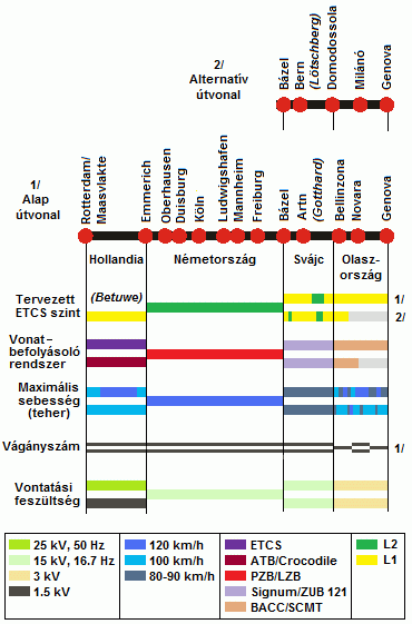 A németországi szakasz 2-es szintű kiépítéséhez a Német Vasutak a biztosítóberendezések teljes cseréje mellett döntött, így folyamatosan ETCS-illesztett, elektronikus állomási és vonali berendezések váltják fel a mai rendszereket. A vonali kiépítés két irányból, a holland, illetve a svájci határtól kezdődik Oberhausen-ig, illetve Mannheimig, a várható befejezés 2012. A 2015-ig befejezendő második fázisban kerül kiépítésre a közbenső szakasz. A fejlesztések eredményeképpen a jelenlegi átalgosan 120 km/h-s tehervonati sebesség is nagyobb lesz.