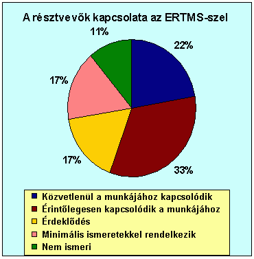 A résztvevők többsége, mintegy 55 %-a munkáján keresztül is kapcsolatban áll az ERTMS valamely alrendszerével. Ezen felül további 17 % érdeklődésének adott hangot. Örömünkre szolgál, hogy "mesziről jött" látogatókat is üdvözölhetünk a 4e-lapokon, hiszen a játékosok több mint 10 %-a még nem ismerte az ERTMS rendszert a nyereményjátékra való jelentkezéskor.