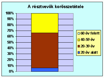 A kérdőívet kitöltők 56 %-a férfi, 44%-a nő. A korösszetétel az alábbi ábrán látható: